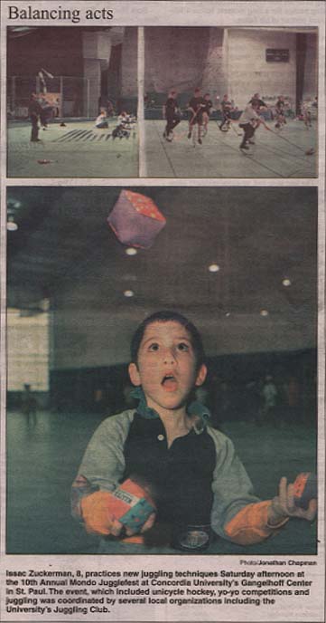 This is my unnoficial, unauthorized index of juggling pix that have appeared in the Minnesota Daily... If you know of any others (and have some way for me to get ahold of them to scan or whatever) let me know!