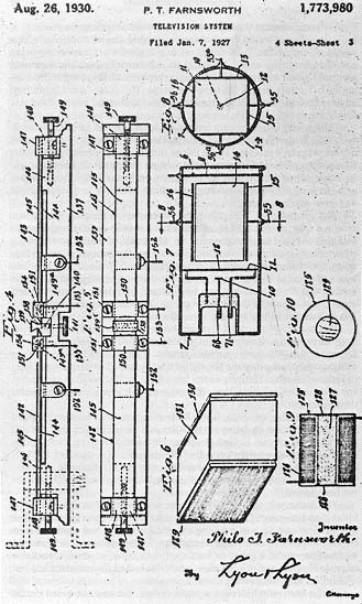 Over his lifetime, Farnsworth held at least 168 patents, and several of them are still in use today. Shown here is Farnsworth's first patent that was eventually disputed by RCA.